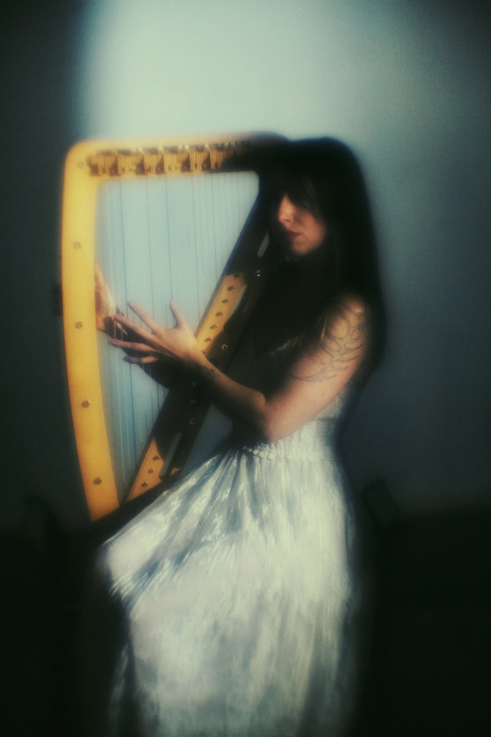 Melissa Achten is a Los Angeles–based harpist and composer grounded in a personal mythology that traces mirrored patterns between the real and the sublime. She treats the harp as a divining instrument, creating work that is diaristic, intimate, and cathartic. She is a member of the experimental new music nonet Ghost Ensemble, the harp and cello duo Rán, and the avant-garde duo Deathflavorkiss. Achten is also the co-founder and executive director of Oracle Egg, an experimental sound and performance incubator in downtown Los Angeles. Her work has been presented in New York, Germany, Iceland, Copenhagen, and London, unfolding in abandoned water towers, cemeteries, black sand beaches, and other liminal spaces.